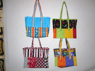 The second one is a pattern from Dec/Jan issue of Quilters Newsletter. I used the left overs from the tree skirt. Crazy bright colors!